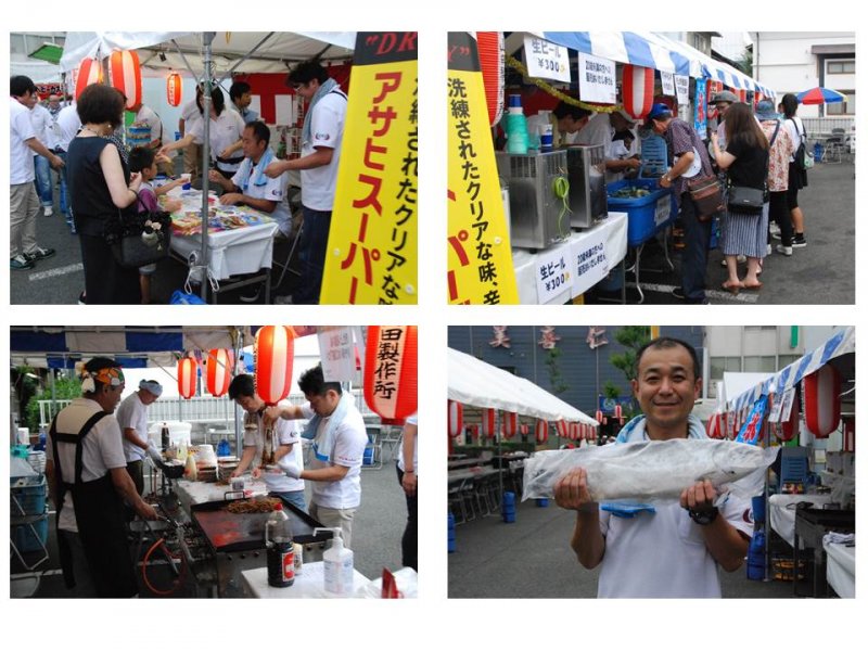 今年の休憩所は、会社全体のコミュニケーション活性を目的に発足した、結鷲会(けっしゅうかい)が中心となり運営しました。各部署から任命された結鷲会メンバーが、部門を越えてお祭りの何日も前からPR活動を行い、多くの従業員がお祭りに参加してくれるよう呼びかけました。当日は結鷲会メンバーと有志で集まってくれた従業員が協力して、飲み物や焼き物を提供し、地域の方々やお取引先様、従業員・家族、OB等、大勢の方をもてなしました。その結果、昨年以上の来場者で休憩所は大いに賑わいました。