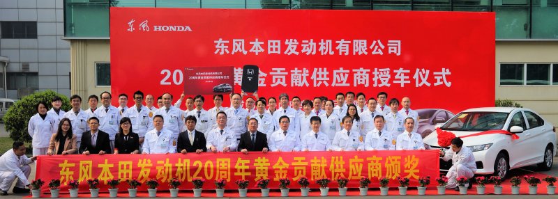 黄金貢献賞は、東風本田発動機有限公司の20周年を記念した特別な賞であり、全取引先の中で3社だけが頂ける非常に栄誉ある賞です。20年間という長期に渡り、品質・コスト・納入のそれぞれの領域で優秀な取引先であり、東風本田発動機有限公司の生産活動へ貢献出来た事、また、近年では難易度の高い機能部品についても安定した納入が出来た事が理由となり今回の受賞に繋がっています。