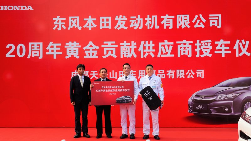 2018年3月、当社中国拠点である成都天興山田車用部品有限公司 は、東風本田発動機有限公司より、「黄金貢献賞」を受賞することが出来ました。