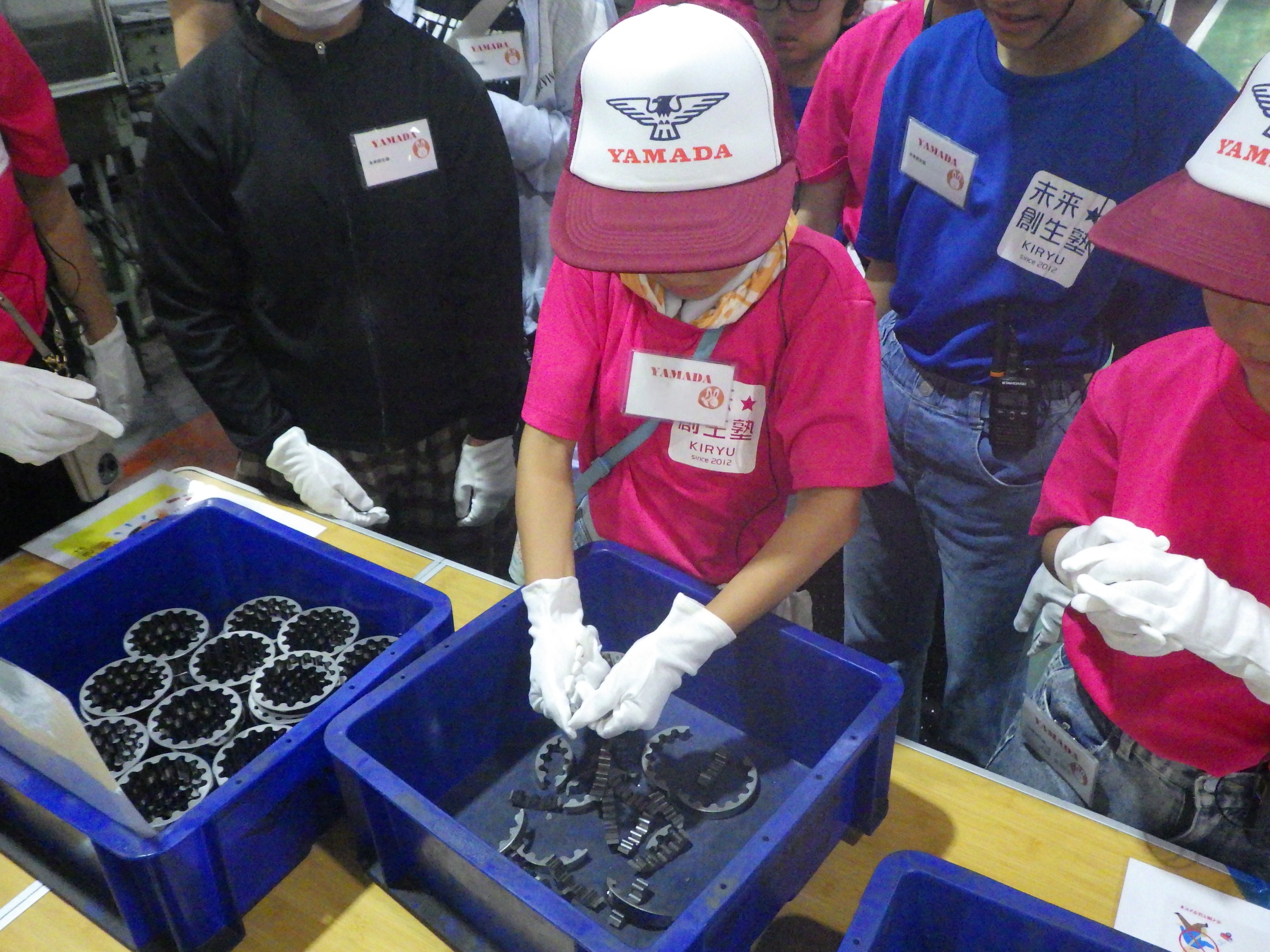 未来創生塾生のみなさんは夏休み期間を利用し、暑い中たくさんの方が参加してくださいました。普段見る機会がほとんどない製品の製造工程を間近で見学していただき、実際に製品を触るような体験コーナーも用意いたしました。また、鋳造を体験できるUVレジンキーホルダー作りを行ったことで、子供も大人も楽しみながら勉強できるイベントとなりました。