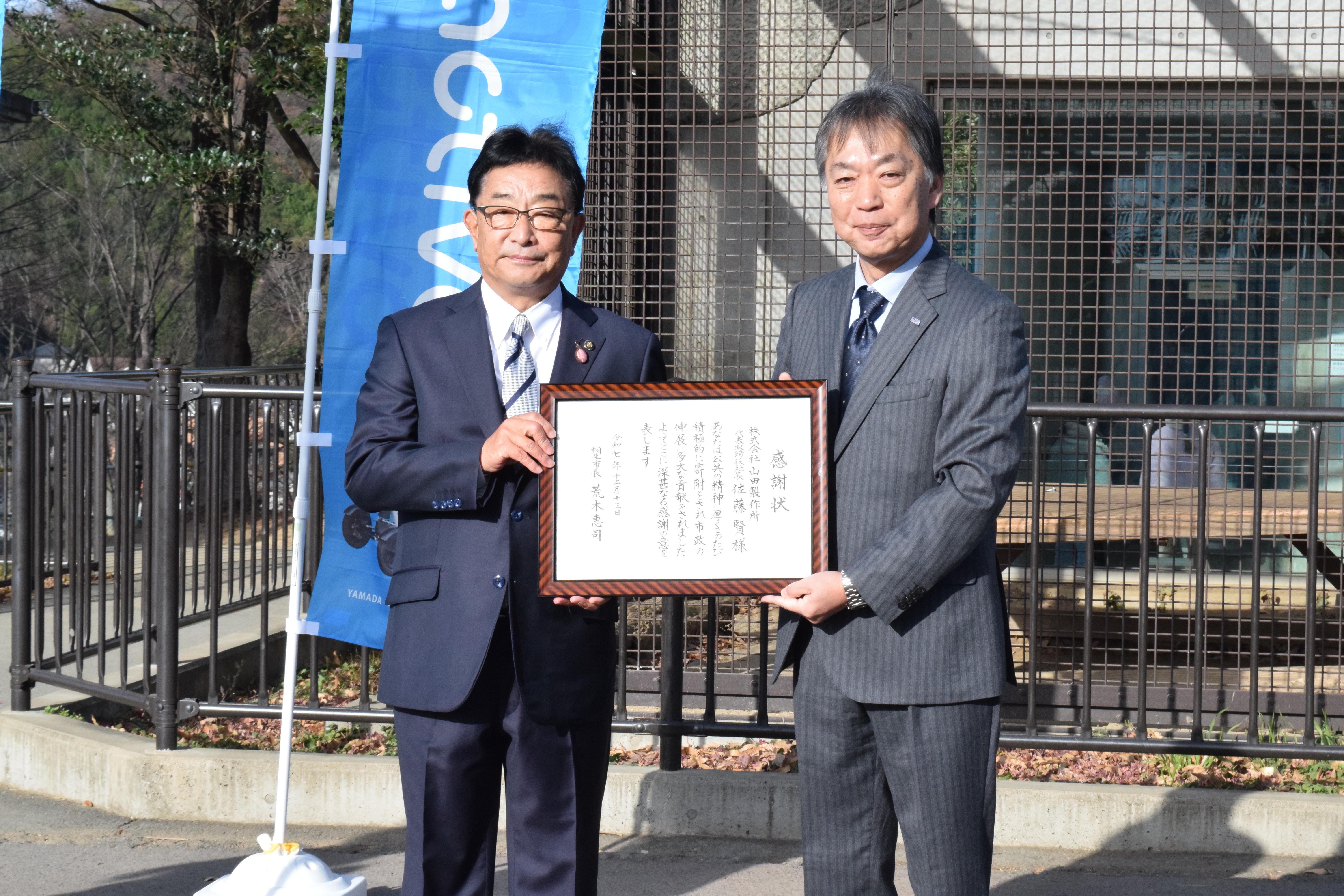 寄付に際し、桐生市の荒木市長より感謝のお言葉を賜り、感謝状を贈呈いただきました。